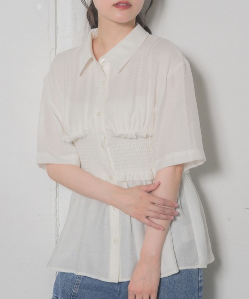 <大人気のドッキングデザインシャツが秋カラーで再登場!>▼デザイン大人っぽいスタイリングに取り入れたいドッキングシャツアイテム。バストのすぐ下で絞られているので、ウエストの細見え効果や、脚長効果などスタイルアップできる秘密が沢山詰まっています。早くも秋カラーで展開していて、季節先取りコーデもおすすめです。▼コーディネートタイトなスカートと合わせることでメリハリのあるコーデが完成◎デニムでカジュアルダウンさせても上品さを残す襟付きシャツです。-----------------------------生地感:普通伸縮性:あり透け感:なし裏地:なし------------------------------▼ブランド紹介RETRO GIRL (レトロガール)自分らしい“ベーシックアイテム”と新しい自分の”トレンドアイテム”が見つかる場所今らしいファッションを楽しむ女性のためのブランド#ドッキング #ギャザーデザイン #シャツ #半袖シャツ▼注意事項※撮影環境やモニター環境によって実際の商品とお色味が 多少異なってみえる場合がございます。品番:RE441523T003 / 品名:ギャザードッキング半袖SH
