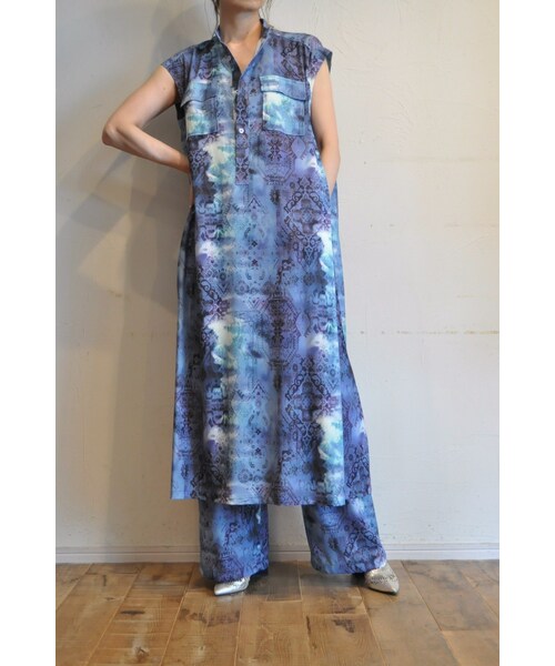 存在感抜群のプリントパンツ。 図柄を幾何学的に配置し、色鮮やかな彩色が多く見られるインカ柄をモチーフにしたオリジナルプリントです。 二の腕も隠せる絶妙なフレンチスリーブにしたこだわりのパターンになっています。 胸元だけでなく、丈の長いアイテムには嬉しい脇にも、ポケットがついています。