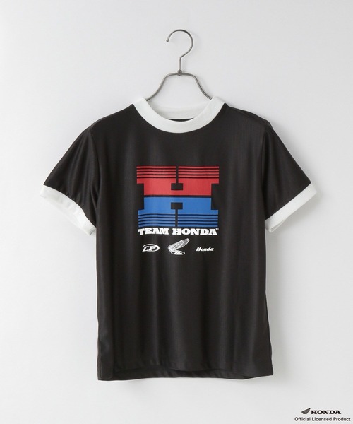 レーサーが着ているスポンサー付きトップスのようなイメージで仕上げたTシャツです。 コンパクトなシルエットと、テロっとした素材がレーサー感のある1枚になっています。