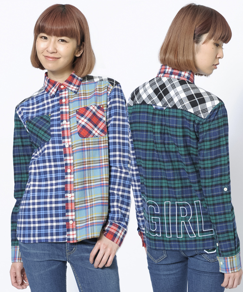 腰に大きく入ったロゴがインパクトのあるアイテム!秋口に活躍すること間違いないチェックのシャツは何枚あっても使える!X-girlらしいマルチカラーがおすすめ!!