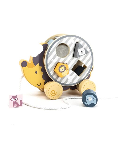 楽しい発見がいっぱいの木のおもちゃ - ひっぱって遊んだり、形合わせも楽しめるおもちゃ。はりねずみが進むと、背中のパーツがくるくると回る楽しい仕掛けも。男の子や女の子どちらのギフトにもぴったりなデザイン。【商品詳細】・付属品:本体(はりねずみ背中のパーツ含む)1点、つみき4点・商品サイズに関する補足:紐の長さ:500mm・つみき三角:W40×D32×H35mm・つみき五角形:W37×D32×H35mm・つみき正方形:W31×D31×H31mm・つみき円柱:W35×D35×H32mm・備考:【対象年齢】2歳~・ご注意:■梱包材は開封後、直ちに捨ててください。お子さまの誤飲・窒息など、不慮の事故につながるおそれがあります。・■ヒモは指や首に巻きつけないでください。・■小部品があります。誤飲・窒息の危険がありますので、お子さまが口に入れないよう十分ご注意ください。・■保護者の方の目の届く場所で使用してください。・■破損・変形した製品は使用しないでください。・■本来の用途以外には使用しないでください。・■火気や暖房器具に近づけないでください。・■天然木の特性上、変色する場合があります。・■木の性質上、ご使用中にささくれや欠けが生じる場合があります。お子様がケガをしないようご注意ください。・■ぶつけたり、こすったり、濡れたままで放置した場合、他のものに色が付着する事がありますのでご注意ください。・■高温多湿・乾燥・温度変化の激しい場所を避けて保管してください。-------------------------------------------------------------------------------------<価格改定のお知らせ>2026/3/2(月)より原材料及び諸物価高騰により価格改定をさせて頂きます。商品タグに記載している価格につきまして、旧価格のものが混在している場合がございます。ご了承下さいますよう、お願い申し上げます。-------------------------------------------------------------------------------------