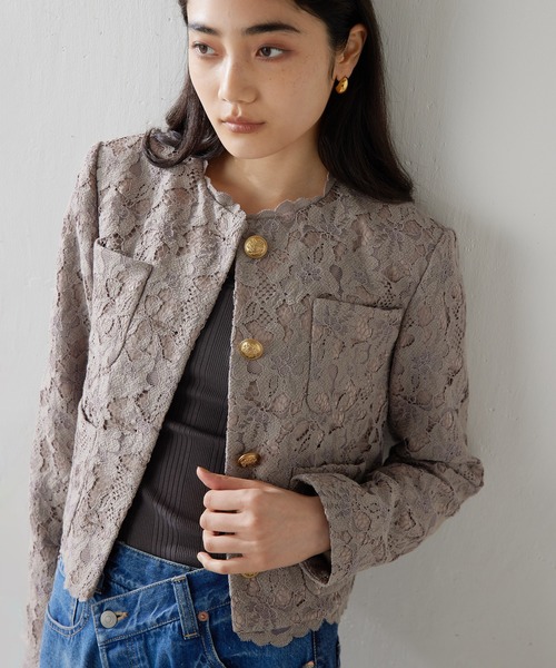 【2024AW】 大人を上品な印象に導く、エレガントなレースジャケット ■立体感のあるレース生地を使用したレースジャケット。 ■ノーカラーやコンパクトなシルエットが上品な一枚。 ■フロントの4ポケットや金ボタンが存在感をプラスし、より華やかな印象に。 ■生地の表情を活かし、首元と裾にあしらったスカララッセルもポイント。 ■オケージョンからカジュアル合わせまで様々なシーンで活躍できるアイテム。 【COLOR】 オフホワイト:着こなしを明るく華やいでくれるオフホワイト。 モカ:ニュアンスカラーがこなれて見える柔らかいモカ。 【MATERIAL】 ポリエステルカチオンをコードに使用したオリジナルラッセルレース。 ---------------------------------------------------- 洗濯方法:ドライクリーニング 透け感:なし 裏地:あり 伸縮性:なし 光沢感:なし ---------------------------------------------------- ※画像の商品はサンプルです。実際の商品と仕様、色味が若干異なる場合があります。 また 、パソコンやスマートフォンのモニター環境などにより、色味が違って見える場合がございます。予めご了承ください。 ※店頭及び屋外での撮影画像は、光の当たり具合で色味が違って見える場合があります。商品の色味は、スタジオ撮影の画像をご参照ください。 ※入荷状況によりお届け予定が前後する場合があります。予めご了承ください。 【 気になるアイテムは、「お気に入り」登録を】 ♡マークをクリックしておくことで、スムーズにお買い物が楽しめます。 ・ラスト一点のお知らせ ・再入荷のお知らせ ・SALEのご案内