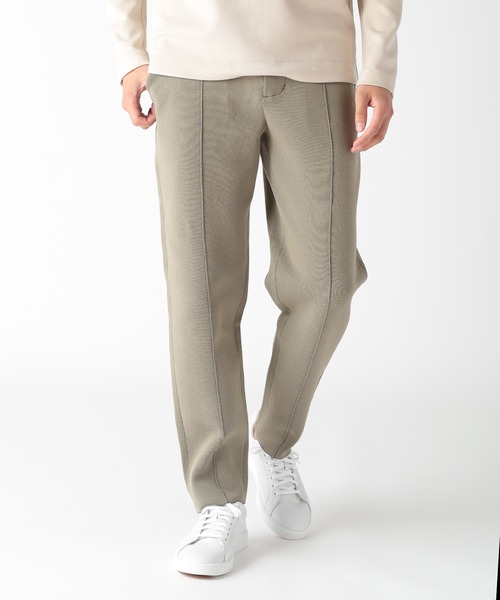 ポリエステルのプレーティングニットで作られたパンツが登場。 ニット素材の柔らかさと快適さを備えながらも、シワになりにくい仕様で、日常の様々なシーンでスタイリッシュに着用いただけます。 軽い着心地で、一日中快適に過ごせます。 シンプルなデザインながらも上品さを感じさせ、カジュアルからフォーマルまで幅広いコーディネートに対応。 同素材のニットジャケット(M0143FJ608)と合わせてセットアップとして着用するのもおすすめです。 ※照明・光の加減、PCやスマートフォンなどの環境により、製品と画像のカラーの見え方が異なる場合がございます。 ※画像はサンプルのため、色味やサイズ等の仕様が変更になる場合がございます。 ※サイズは弊社規定の採寸によって記載しておりますが、若干の個体差が生じる場合がございます。