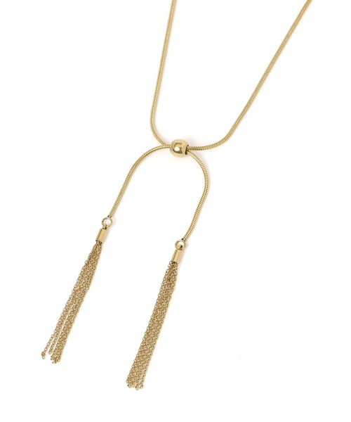 お手入れらくらくステンレス☆ 【素材】 ステンレス ●シルバーは素材の色味を生かしています。 硬く、傷が付きにくい素材で、水・汗でもさびにくく変色しにくいです。 ●ゴールドは密着性の高いイオンプレーティング加工。 一般的なメッキと異なり、耐久性が高く、水・汗でも変色しにくいです。 金属アレルギー反応の出にくい、チタンを使用しています。 【デザイン】 先端のフリンジデザインがポイントのY字ネックレス。 真ん中のボールパーツをスライドさせて、バランスの調整が出来ます。 チェーンはボックスとスネークの2種類でご用意。(シルバー系1・ゴールド系1はボックスチェーン、シルバー系2・ゴールド系2はスネークチェーン) ボール・フリンジともに大きすぎず、程よいポイントになり幅広いスタイルで使えます。 同デザインのステンレスフリンジブレス/132104とのセット使いも◎ 【お買い物が便利になる機能がたくさん!】 ▼商品のお気に入り登録▼ 完売アイテムの再入荷通知、ラスト1点、またクーポンやお値下げ通知をお知らせします。 ▼ブランドのお気に入り登録▼ 新商品や再入荷のお知らせ等、いち早くブランドのお得な情報を受け取ることができます。 ぜひご登録ください。