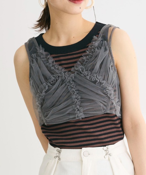 フリルが甘さをプラスするチュール素材のビスチェ。旬のシアー素材を使用しており、スタイリングにこなれ感をプラスしてくれます。背面はシャーリングで切り替え、身につけやすいのもうれしいポイント◎一点投入で着こなしもレディライクに演出してくれるアイテムです。 透け感[有り] 裏地[無し] 伸縮性[有り] 光沢感[無し] 生地の厚さ[薄手] 付属品[無し] ポケット[無し]●Green Parks (fuuwa / topic / sara)●(グリーン パークス)20以上の人気ブランドを取り扱う、全国に約320店舗展開するアパレルセレクトショップ。ベーシックながらもさりげなくトレンドを取り入れたオリジナルブランドchocol raffine robeも展開。▼ 商品のお気に入り登録がおすすめです ▼商品ページ内のハートマークをクリック。完売時の再入荷や、最後の1点の通知、コーディネート画像がアップされたとき、お得なお値下げの際の通知を受ける事ができます。【お知らせ】ページでも通知が確認できます。
