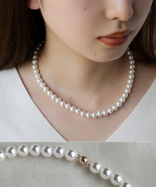 【着脱が超カンタンなマグネット金具のネックレス】デイリーコーデから冠婚葬祭まで、幅広く使えるベーシックなデザインのパールネックレス。くっつけるだけのマグネット金具を使用し、着脱の際の煩わしさが一掃された画期的な仕様。短いネックレスの着脱が苦手な方や、長いネイルをしていても問題なく着けられます。どんなスタイルにも使えるので、一つ持っておくと重宝する便利なアイテムです。【pick up points】・着脱が簡単なマグネット金具・カジュアルからフォーマルまで、どんなシーンでも使えるベーシックアイテム*注意事項撮影場所やイメージにより実際の商品と色味が若干異なる場合がございます。商品のお色味はカラーバリエーション画像をご参照ください。◆《お気に入り登録》のおすすめ◆気になる商品は「お気に入り」登録がおすすめ。・「商品のお気に入り登録」で再入荷通知や、ラスト1点の通知、セール通知も受け取ることができます!・お気に入り登録商品は、マイページにて現在の商品詳細(価格情報や在庫状況)が確認が可能です。お買い物リストの管理に是非ご利用下さい!