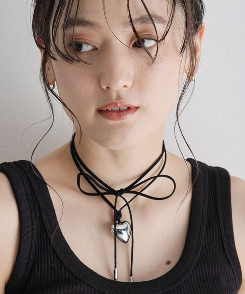 トレンド感溢れる、ハートモチーフのネックレス。 その日の気分によってアレンジ自在のマルチWAY仕様◎ インパクトのあるハートモチーフがポイントで、 ぐるっと垂らしてチョーカー風にしたり、前や後ろでリボン結びも可愛い! コーデがシンプルになりがちな、これからの季節におすすめのアクセサリーです!
