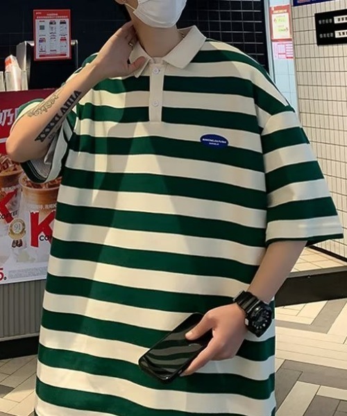 【DESIGN】 どんなコーデにも合わせやすいブラック、グリーン、ブラウンの3カラーご用意。 シンプルなデザインで使いまわしのできるボーダーポロシャツ。 大きめサイズをご用意。トレンドのオーバーサイズな着こなしをしていただけます。 レディースの方はドロップショルダーにご着用できるユニセックスアイテム。 身幅も大きいボックスシルエットなので、体型問わず、どんな方にも着ていただけます! 韓国ファッション、メンズライク、古着が好きな方にもおすすめです◎ 【STYLING】 インナーにロングスリーブTシャツ、パーカーを合わせるのがおすすめ。 オーバーサイズなのでインナーのサイズも選ばないのもうれしいポイント◎ パンツはワイドデニムパンツやミリタリーパンツと合わせてキレイめカジュアルコーデ、韓国ストリートな雰囲気に。 トラックパンツやスラックスと合わせるとシティーボーイのような着こなしになります。 バケットハット、ニットキャップなどの帽子類や、リングやネックレスなどのシルバーアクセサリーとも相性抜群。 足元はスニーカー、サンダルなどカジュアルなアイテムがこれからの時期におすすめ。 革靴、ヒールブーツなどのドレスシューズ、サイドゴアブーツと合わせるとモードな印象に。 インスタグラム開設しました! 新着情報やお得な情報を発信していきますのでお気軽にフォローお願いします!! ID:@mgvofficial.jp こちらの商品はセレクト・インポートアイテムのためサイズ感が日本規格のものとは異なります。 お買い上げの際にはサイズチャートでご確認頂きますようお願いいたします。 【お買い物をよりお楽しみいただくために】 ●商品のお気に入り登録(ハートマークをクリック) 完売カラーの再入荷や、ラスト1点のお知らせ、セール情報などの通知を受け取ることができます。 ●ブランドのお気に入り登録 新商品や再入荷など、お得な情報をいち早く受け取ることができます。 ●最短で翌日お届け 商品をカートに入れた後、注文内容の確認ページで「即日配送」を選択していただければ、最短でご注文した翌日にお届け致します。 是非ご利用頂き、お買い物をお楽しみください。