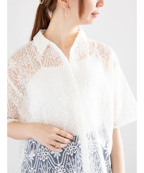 細やかなオーガンジーレース刺しゅうが華やかな印象を与えるシャツ。短めのクロップド丈になっているため、ウエスト位置を高く見せる効果が得られます。ベーシックなレギュラーカラーがきちんと感をプラス。お手持ちのキャミソールとレイヤードすれば、涼しげなコーディネートが完成するアイテムです。※商品画像は、撮影環境やお客様のご利用のPC・スマートフォンのモニター環境などにより実物と色味に差異がある場合がございます。