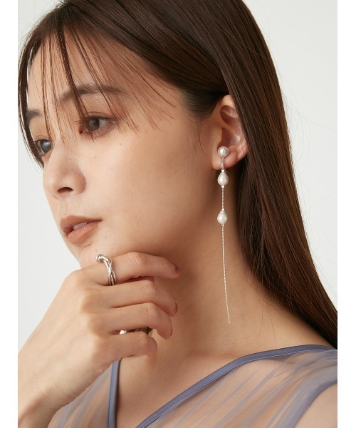 【艶めくガラスパールをあしらったナローチェーンイヤリングで女っぽく】 【Design/Styling】 艶感を引き立てるカッティングが特徴のガラスパールを3つ繋げたナローイヤリング。 長く垂れるチェーンが華やかなムードを作りつつ、デコルテ周りを華奢に見せてくれます。 オケージョンドレスに合わせてスペシャルに、ふんわりニットに合わせて女性らしく。 存在感がありながらも様々なスタイリングにフィットします。 SLVとGLDの2色展開です。 ※照明の関係により、実際よりも色味が違って見える場合があります。 またパソコン・スマートフォンなどの環境により、若干製品と画像のカラーが異なる場合もございます。予めご了承ください。 商品の色味は、商品単品画像をご参照下さい。 ※商品画像はサンプルのため、色味やサイズ等の仕様に変更がある場合がございますので、予めご了承ください。