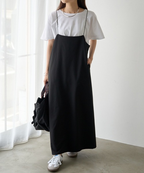 ピュアルセシン 2024 AW collection【EFFORTLESS CLASS】 ◇1着で毎日のコーデがおしゃれに決まる!◇ ●商品のお気に入り登録 クーポンやタイムセール、再入荷通知やラスト1点などお得な情報を受け取ることができます。 ご登録をお忘れなく◎ ●デザイン キャミワンピースとフレアスリーブのTシャツがセットになったアイテム。 セットで着れば悩まずコーデが決まります! インナーを長袖にしたり、羽織りで調整すればオールシーズン着回しができ便利です。 華奢な肩紐使いが大人っぽく、お好みの長さに合わせて着用いただけます。 Iラインのすっきりとしたワンピースですが、 身体のシルエットは拾わずきれいに見せてくれます。 モノトーンでシンプルに仕上げ、 デイリーユースに大人カジュアルなスタイリングを楽しめる1枚です。 ●スタイリング インナーをロゴやボーダーTシャツにしたり、ブラウスなどに差し替えて、 その日の気分に合わせたスタイリングで着用いただけます。 トレンドのシアートップスを合わせれば、抜け感が出てレディライクな着こなしに◎ 夏は足元をサンダルに、秋冬はブーツ合わせおすすめです。 ●素材 ワンピースはややハリがあり、薄すぎない生地感なので 裏地なしでも透けずに着られます。 インナーのトップスはコットン100%で柔かく、着心地抜群です。 【インナーサイズ】 胸囲 130cm 総丈 65cm 袖丈 32cm =============================== 洗濯方法:ドライクリーニング/手洗い/乾燥機不可 透け感:ワンピース→なし Tシャツ→ややあり 裏地:なし 伸縮性:ワンピース→なし Tシャツ→ややあり 光沢感:なし 生地の厚さ:普通 【スタッフコメント】 年齢:40代前半/身長:153cm/普段着用サイズ:Sサイズ~Mサイズ 着用感:すっきりとしたシルエットですが、裾にスリットがあるので足さばきもよく、 窮屈感なく着られました。肩紐で長さ調整が出来るので低身長の方にもおすすめです。 =============================== ※着用、お取り扱いの際は、商品についている品質表示とアテンションタグを必ずご確認下さい。 ※撮影場所やお使いのモニター環境により若干お色味が異なる場合がございます。特にロケの撮影では明るく見える傾向にございます。 ※予約商品はサンプルで撮影をしております。若干の仕様が変更になる場合がございますので予めご了承の上ご注文くださいますようお願いいたします。