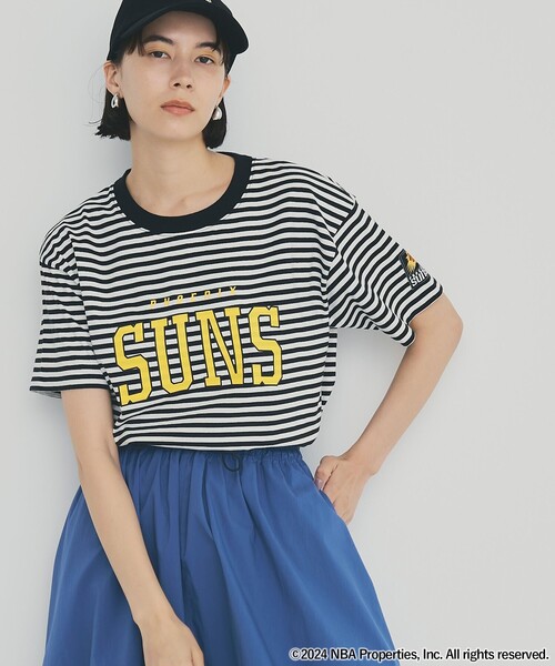 NBAに別注をかけた、コーエンでしか手に入れることの出来ないオリジナルロゴTEE 特に人気のある6チームのロゴやアイコンをアクセントにした使いやすい1枚 18度目の優勝を果たしたセルティックスなどをかわいらしくデザイン! ■デザイン あえてオーバーサイズやヴィンテージ風にデザインせず、どなたにでも着ていただける洗練された印象で仕上げました。 胸元にやや大きめのロゴプリントと袖にエンブレムを配し、無地とボーダーの計6色をアソート展開。 ベーシックなサイズ感なので、トレンドのチュール合わせなどで合わせたスタイリングもオススメです。 Los Angeles Lakers/オフホワイト Chicago Bulls/ダークグレー Golden State Warriors/コバルト Phoenix Suns/その他1(ホワイト×ブラックのボーダー) Boston Celtics/その他2(ベージュ×グリーンのボーダー) New York Knicks/その他3(ホワイト×ブルーのボーダー) ■素材 綿素材で仕上げた柔らかな着心地です。 透け感:オフホワイトややあり 生地の厚さ:普通 光沢感:なし 裏地:なし 家庭洗濯:可能(ネット使用) 【注意点】 ※撮影商品はサンプルの為、実際の仕様と異なる場合がございます。 ※画像の商品は光の照射や角度、お使いのモニター環境により、実物と色味が異なる場合がございます。スタジオ物撮りの画像が実物の色味に一番近くなっております。 ※予約商品の場合、お届け予定はあくまでも目安となります。 生産の都合上、お届け時期が前後したり実店舗入荷時期とずれる場合がございますので、あらかじめご了承ください。 品名:NBA別注 ロゴプリントT 品番:76256490482