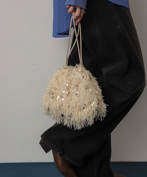 触り心地も柔らかく、エレガントさと可愛さを兼ね備えたバッグ〇コンパクトなサイズながらも、必要なアイテムをしっかり収納できる実用性〇細身のショルダーストラップが軽やかで、肩にかけてもスタイリッシュに決まります。〇キュッと締められる巾着タイプstylingカジュアルな日常使いから、特別な日の装いまで幅広く活躍するアイテム。【2024 Autumn/Winter】【24AW】※素材の性質上、引っ掛け、引っ掛かりが起きやすい性質をもっています。※スパンコールは非常にデリケートなものです。そのため、直接アイロンをかけたりスチームをかけたりすると、変形や光沢消失の恐れがありますのでご注意ください。※その他お取り扱いに関しましては、商品に付属のアテンションタグをご覧ください。総重量 : 約200g※商品画像は、光の当たり具合やパソコンなどの閲覧環境により、実際の色味と異なって見える場合がございます。予めご了承ください。※商品の色味の目安は、商品単体の画像をご参照ください。▼お気に入り登録のおすすめ▼お気に入り登録商品は、マイページにて現在の価格情報や在庫状況の確認が可能です。 お買い物リストの管理に是非ご利用下さい。
