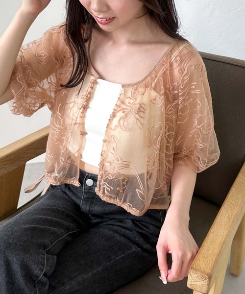 ■大きな花柄刺繍が主役に■ 大きい花柄を刺繍で施したチュール素材が目を惹く1枚! 一味変わったチュールやレースのアイテムをお探しの方におすすめです。 全体をバルーン仕様にし、パフっと丸みのある可愛らしい印象に。 裾はドロストリボンでギャザー分量を調節できるのでお好みのシルエットで着用頂けます。 バルーンシルエットでも広めのVネックが顔回りをスッキリと見せてくれます。 無地のチュールを下に重ねているので、透け感が気になりにくいのも嬉しいポイント。 前後2way、羽織と様々な着こなしを楽しめます! ーーーーーーーーーーーーーーー 透け感:あり 裏地:あり 伸縮性:あり 光沢感:なし 生地厚さ:普通 洗濯方法:手洗い可 ※詳しいお手入れ方法は商品についているタグをご覧ください ーーーーーーーーーーーーーーー ※ご利用のモニター環境により、実際の色味と多少異なる場合がございます。 … information … 欲しいitemをお気に入り登録(♡マークをclick) ・お買いのがし対策…完売itemの再入荷やラスト1点の情報をお知らせ ・欲しいitemをお得にget…price downになったらいち早くお知らせ ・スムーズ検索…ZOZOのお気に入りアイテムページで簡単checkできるから、再検索不要♪