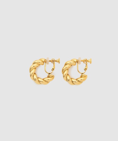 【素材】 メタルにゴールドプレーティング加工を施しています。 【デザイン・シルエット】 「Suprematism(シュプレマティズム)」のテーマより、シンプルで削ぎ落とされた印象のアクセサリーシリーズ。 サントロペの港のヨットを連想させる、ロープのモチーフをフープ状にあしらったイヤリング。ネジバネ式イヤリング金具を使用しているので、安定感のある着け心地です。 【カラー】 ゴールド、1色展開 ※画像の商品はサンプルです。実際の商品と仕様、加工、サイズが異なる場合がございます。 ※撮影場所やライティング、お使いのモニター環境によって色の見え方が異なる場合がございます。 ※商品のカラーは画像の色味をご参照ください。動画は仕様説明のため、色味が実物と異なる場合がございます。