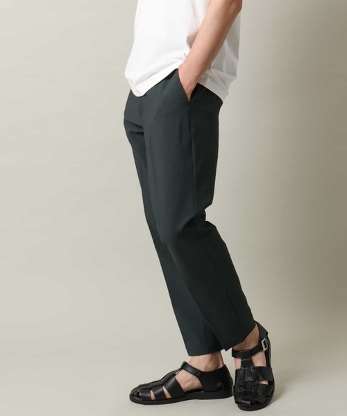 ◆ビジネスシーンにもオススメ! 「スマートスラックス」シリーズのアンクルカット。 夏に嬉しいシアサッカー素材を使用した美脚シルエットパンツ。◆ 【デザイン】 脚長効果が期待できるオリジナルのこだわり美脚パンツ。 やや細めでテーパードしたシルエットにセンタープレスを入れているので、きれいな見え方に仕上げています。 レングスはアンクル丈(くるぶし丈)のため、見た目も着用しても涼しく感じられるため、暑い夏にぴったりの一枚です。 ストレッチ性もあり、ウエストイージー仕様のためカジュアルシーンから在宅ワークにも大変オススメです。 1本持っているといろいろなシーンに活躍できるボトムです。 【素材】 細かいストライプ柄で表現したシアサッカー素材を使用。 凹凸感のある組織で肌に触れる接地面積が小さいため、サラッとしていて夏に嬉しい快適な着心地です。 また、着用時のシワにも強い素材なので、長時間の着用でも快適に過ごせます。 イージーケア、ご自宅で気軽に洗濯機洗いができるためデイリーユースに着用できるのも嬉しいポイントです。 【スタイリング】 トップスには同素材のオープンカラ―シャツを合わせる同色のセットアップコーディネートがまとまりがありトレンド感が満載です。 きれいめスタイルでしたらシャツ、カジュアルスタイルであればシンプルに無地カットソーやトレンドではロゴTとあわせるのがオススメ。 ---------------- 透け感:なし 裏地:なし 伸縮性:ややあり 光沢感:なし 生地の厚さ:やや薄手 ---------------- ≪お気に入り登録機能の使い方≫ ■商品のお気に入り登録(ハートマークをクリック) 再入荷通知や値下げ等、お得なご案内を受けることができます。 ---------------- ※お使いの液晶環境により、色味が多少異なる場合がございます。予めご了承ください。 ※サンプルにて撮影しておりますため、お届けの商品と仕様が若干異なる場合がございます。予めご了承ください。