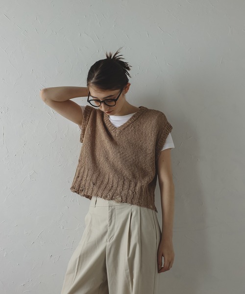ラフなスタイルとエフォートレスな魅力を兼ね備えたダメージニット ローゲージニットにクラッシュ加工を施した存在感のある一着。 クラフト感のあるダメージ加工がユニークなアクセントです。 ゆったりとしたドルマンシルエットでざっくりしたルーズシルエットが魅力。 カジュアルからシックまで、幅広いスタイルにマッチする今シーズンのマストハブアイテムです。 ------------------------ 透け感/あり 光沢感/なし 伸縮性/あり 裏地/なし 厚み/普通 ------------------------ ※着用中の摩擦や、汗、水濡れにご注意ください。濃色品は、色落ちや他のものへ色移りすることがあります。 ※着用中や着脱の際、バッグやベルト、アクセサリーなどによる引っ掛けにご注意ください。 ※ダメージ加工は1枚1枚加工しているため、色や形にそれぞれ差があります。 【必ずご確認の上、ご検討ください】 ※商品画像は撮影時の光や角度、お使いのモニター環境により実物の色味と異なって見える場合がございます。 ※サイト上のカラー・サイズ表記と商品タグのカラー名・サイズ名が異なる場合がございます。 ※着用、お取り扱いの際は商品についておりますアテンションタグ、洗濯ネームを必ずご確認ください。 ※生産時期により、色・素材・サイズ感など多少異なる場合がございます。 ※商品によっては、繊維や染料のにおいが感じられる場合がございます。 数日のご使用や陰干しなどで匂いはほとんど感じられなくなりますのでお試しください。 ※通販の特性上、到着時には畳みシワがついている場合がございます。 【Information】 ◆《お気に入り登録》がオススメ◆ ・「商品のお気に入り登録」で再入荷通知や、ラストの通知、セール通知も受け取ることが出来ます。 ・「ブランドのお気に入り登録」で新商品や再入荷など、お得な情報を受け取ることが出来ます。