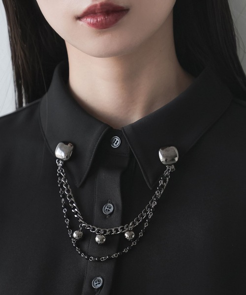 ーーー襟に挟んで着ける存在感抜群のクリップ型アクセサリーーーーpoint□シャツやジャケットなどの襟に挟んで着ける新しいアクセサリー□挟むだけで簡単に着脱ができるクリップ仕様□シンプルな服もおしゃれに見せてくれるメタルデザイン□ネックレスよりも存在感があるため、一枚着の季節に使いやすいstylingメタル×パールで上品な印象にもなるため、お呼ばれなどにもおすすめです◎ジャケットの襟やシャツやワンピースなどにもおすすめですが、バッグや、パンツのポケットなどに着けてさりげなく見せるのも◎※撮影環境により、光の当たり具合で 色味が違って見える場合があります。 あらかじめご了承下さい。