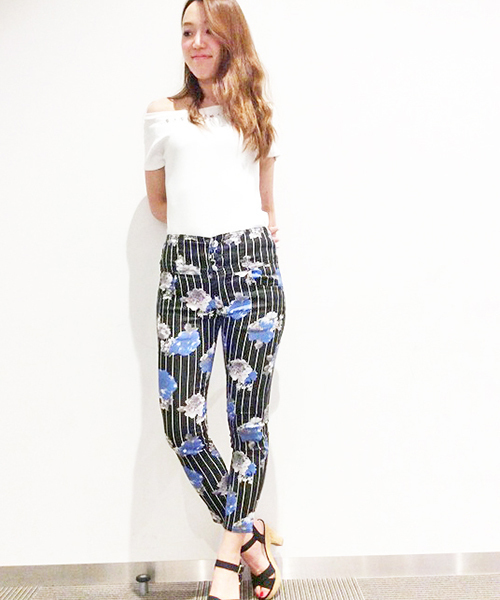 今季トレンドの、ストライプ×花柄のハイウエストスキニーが登場!! ストライプの縦長ラインのおかげで美脚&脚長効果も♪ 花柄が入ることによってアクセントが加わるのでシンプルなTシャツやシャツスタイルにピッタリ☆ 同型でショートパンツverもございますのでそちらもチェックしてみてください♪ 【モデル身長:167cm・着用サイズ:MEDIUM】