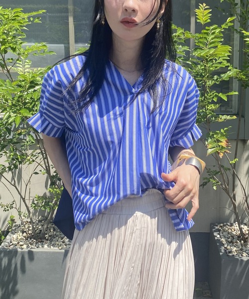 【異素材使いストライプブラウス】 【Fabric】 ストライプとスムースカットソーの異素材MIX。 【Design】 きちんと見えするストライプ柄は、バックにカットソーをプラスすることでカジュアルな仕上がりに。 袖のタックデザインは女性らしいシルエット。 スキッパーデザインでばざっと着れるラクチンアイテムです。 【Styling】 キレイメのパンツやスカートと合わせてキチンと感を演出。 デニム合わせでカジュアルに。足元をキレイメサンダルやパンプスにすればこなれ感を演出できます。 【Color】 オフストライプ×グレースムース ブラックストライプ×ブラックスムース ブルーストライプ×ネイビースムース 表地と同色の異素材使いでどの色もコーディネートしやすくおすすめ。 ------------------------- ■透け感:ストライプ若干 ■裏地:なし ■伸縮性:スムース生地部分あり ■光沢感:なし ■生地の厚さ:普通 ------------------------- ☆★お買い物をお楽しみいただく為に★☆ ★商品のお気に入り登録 完売カラーの再入荷通知や、ラスト1点の通知、 セールの通知も受け取ることができます。 ★ブランドのお気に入り登録 新商品や再入荷等、ブランドのお得な情報を いち早く受け取ることができます。