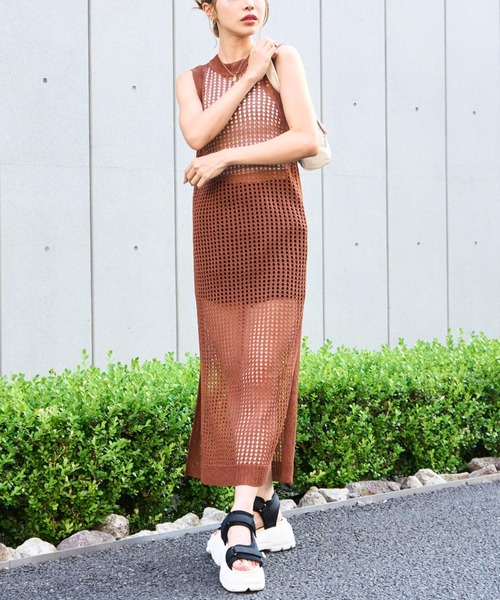 レイヤードコーデで夏のトレンドスタイルが叶うロングワンピース。●メッシュ素材が涼し気な印象を与え、ヘルシーな肌見せを演出してくれます。●サイドのスリットが抜け感もプラス。●ワンピースにレイヤードしたり、カジュアルなパンツスタイルにレイヤードしたりと様々なスタイリングにオンできる万能な1枚です。●キャミソールなど、1枚での肌見せに抵抗がある方にもおススメ◎※ストレッチあり※裏地なし※透ける素材になっております。※ニット素材のため、伸縮性があり記載しているサイズと若干異なる場合がございます。予めご了承ください。※商品のお取扱いに関しましては、商品に付属のアテンションカード、洗濯ネームをご覧ください。※モデル着用画像は光の当たり具合で色味が違って見える場合がございます。※商品の色味の目安は、商品単体の画像をご参照ください。【お買いものをお楽しみいただく為に!】▼商品のお気に入り登録完売カラーの再入荷通知や、ラスト1点の通知、セールの通知も受け取ることができます。▼ブランドのお気に入り登録新商品や再入荷など、いち早くブランドのお得な情報を受け取ることができます。