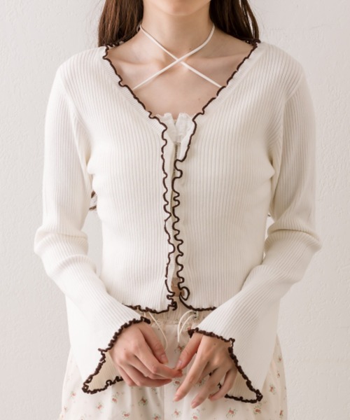 配色のメロウフリルがポイントのカーディガン■デザイン・ベルスリーブで女性らしいシルエットです。・前を閉めて1枚でトップスとしても、開けて羽織りとしても活躍します。・短めの丈感で着るだけでスタイルアップが期待できます。・柔らかくもちもちした触り心地なので、キャミソールなどの上にも着やすいです。■カラー・オフ/サックス/ブラウン/ブラックの4色展開■スタイリング・カップ付きのインナーに羽織るのがおすすめ。・スカートを合わせてガーリーコーデや、パンツ合わせでカジュアルコーデまで幅広く使えます。・キャミワンピの羽織りとしても活躍します。-----------------------------裏地:なし光沢感:なし透け感:なし伸縮性:あり手洗い:不可タンブラー乾燥:不可アイロン:不可-----------------------------model:161cm/166cm お取り扱い上の注意※キャンペーンやフェアにより価格が変動する場合がございます。※サンプルで撮影している為、実際の商品と若干仕様が異なる場合がございます。※着用、お取り扱いの際は、商品についている品質表示とアテンションタグを必ずご確認下さい。※ご覧のモニター環境や撮影環境により実際の商品と多少色味が異なって見える場合がございます。ご理解の程よろしくお願いいたします。※引っかけ注意・粗い組織のものや、表面に凹凸があってルーズな組織のもの表面に糸が浮き出ているものは、ちょっとした不注意から引っかけてしまいがちです。取り扱いの際は取り扱い絵表示確認の上、十分注意してください。・着用時にベルトや、バックや周囲の壁など表面の粗いものとの摩擦や引っかかりに注意してください。・水洗いやクリーニングの際にも他の物ものとの引っかかりに注意して下さい。≪返品・交換について≫・着用後、洗濯後の返品・交換は致しかねます。・商品到着後、着用前に商品状態のご確認をお願い致します。■お気に入り登録のおすす【気になるアイテムを登録】ハートをクリックしてお気に入りに登録すると完売カラーの再入荷やラスト1点の通知、セールの通知を受けとることができます。【ブランドを登録】新商品や再入荷、セール通知など、いち早くブランドの情報を受けとることができます。