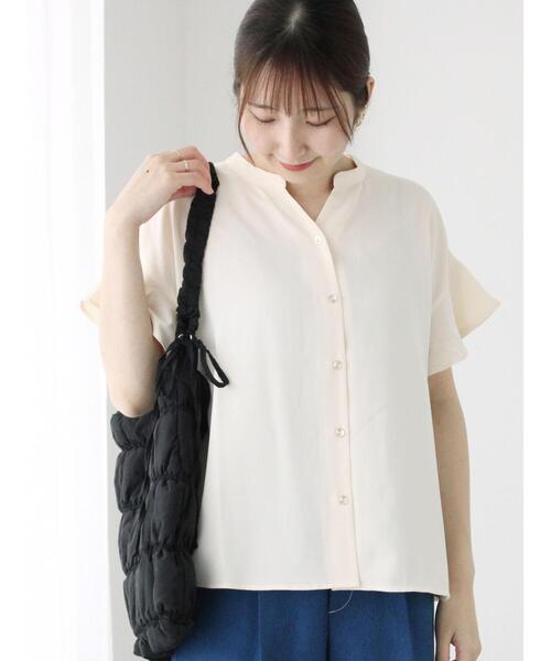 メタルボタンが上品なアクセントをプラスするブラウス。 ふんわりとしたフレア袖も、女性らしい柔らかな雰囲気を演出。 気になる二の腕をさりげなくカバーしてくれるのもうれしいポイントです。 裾のサイドにはスリットが施されており、軽やかなヌケ感をプラス。 フロントのみタックインしたりと、様々な着こなしのアレンジも楽しめるアイテムです。 ※商品画像は、撮影環境やお客様のご利用のPC・スマートフォンのモニター環境などにより実物と色味に差異がある場合がございます。 【その他採寸】 F 着丈:[前]55cm[後]58cm