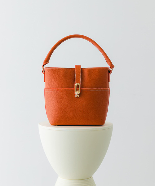 高級感のあるワンハンドルバッグ【Material】上品な合皮を使用【Design】トレンドのワンハンドルデザイン。バケツ型で型崩れがしづらく底鋲付で自立型。フロントにポケットが付いているので荷物の小分けも可能。フロントの金具がアクセント。【Color】BLACK,ORANGE,TAUPEの3色展開【Styling point】パンツ・スカートどちらにも合わせやすいデザイン。カジュアルなスタイリングに合わせて頂くのもオススメ。【2024 Autumn/Winter】【24AW】総重量 : 約460g※商品画像は、光の当たり具合やパソコンなどの閲覧環境により、実際の色味と異なって見える場合がございます。予めご了承ください。※商品の色味の目安は、商品単体の画像をご参照ください。▼お気に入り登録のおすすめ▼お気に入り登録商品は、マイページにて現在の価格情報や在庫状況の確認が可能です。 お買い物リストの管理に是非ご利用下さい。