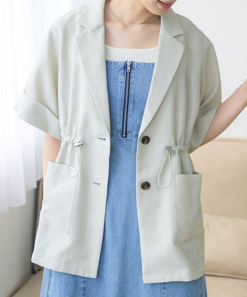 <麻ライクな軽い素材で夏に着やすいテーラードジャケット>▼デザイン夏に着やすい軽い素材が魅力のテーラードジャケット。ウエストにはドロストデザインがついているので、ジャケットでありながらどこかラフにカジュアルに着て頂けます。絞り具合でシルエットも変更できるので、コーデに合わせて自分流にアレンジ♪▼コーディネート麻ライクラフパンツとキルトセットアップで着て頂けます。ワンピースの上に羽織るのもおすすめです。------------------------------生地感:やや薄手伸縮性:なし透け感:ほぼなし裏地:なし-----------------------------▼ブランド紹介RETRO GIRL (レトロガール)自分らしい“ベーシックアイテム”と新しい自分の”トレンドアイテム”が見つかる場所今らしいファッションを楽しむ女性のためのブランド#ドロスト #サマージャケット #ジャケット ▼注意事項※撮影環境やモニター環境によって実際の商品とお色味が 多少異なってみえる場合がございます。品番:RE456621T001 / 品名:ドロストテーラードJK