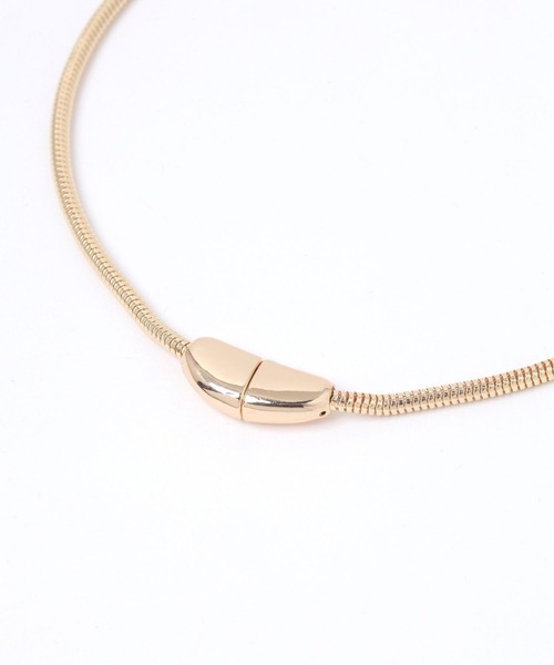 気軽に使えるカジュアルアクセシンプルでカジュアルな印象のネックレス。首の後ろ部分に金具が無く、トップパーツのマグネットで簡単に着脱可能です。オンオフ問わず、デイリーに活躍します。