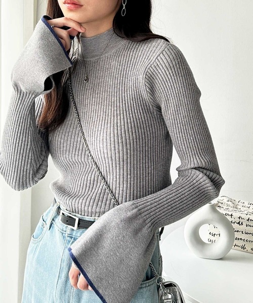 コーデに女性らしさをプラス! 華奢見えを叶えるフレアースリーブニット 〇腕をキレイに見せてくれるスリット入りの袖フレアーデザイン 〇袖口に施した配色ラインがコーデのアクセント 〇インナー使いにも使いやすいほどよい厚みのニット 〇体のラインを拾いすぎないほどよいフィット感 〇モチっと柔らかな肌触りの良さも魅力 ■デザイン 女性らしく華奢見えを叶える袖フレアーデザインのリブニット。 こなれ感を演出するスリット入り&今年らしい配色使いも◎。 ほどよいフィット感と厚みが使い勝手のよいニットで、1枚着はもちろん、キャミワンピやサロペット、ベストのインナーなど、幅広いスタイリグで活躍します。 胸元をすっきり見せるボトルネックで、大人っぽくキレイ見えを叶えます。 着回ししやすいシンプルなデザインで、ON・OFF使えるのも嬉しいポイント! ■素材 モチモチとした肌触りの良いニット素材 …………………… 透け感:なし 厚さ:普通 伸縮性:あり 裏地:なし 洗濯方法:手洗い …………………… ■コーディネート シンプルなデザインで、様々なスタイルに合わせやすい万能トップス。 アクセントになるフレアースリーブがコーデを格上げしてくれるので、デニムやスラックスと合わせるだけで、こなれ感のあるスタイリングを完成! スカートやキャミワンピースなど女性らしいアイテムと合わせても、大人っぽく華やかにキマります。 コンパクトなサイズ感なので、ボトムにインしやすく、すっきり着ていただけます。 ●袖口スリット有 ※商品によって柄の出方が異なる場合があります。 --------------------------------------------------------------------- ※サイズ寸法は実際の寸法と多少の誤差がある場合が ございます。 ※ご覧いただいているPC/WEB環境や撮影環境により、 多少色味が異なって見える場合がございます。 【お買い物をよりお楽しみいただく為に】 ▼商品のお気に入り登録をおすすめします♪ 『♡をクリック!』 完売カラーの再入荷やラスト1点の追加、 セールの際の通知を受ける事ができます。 ブランドのお気に入り登録もご一緒にお願い致します。 ---------------------------------------------------------------------