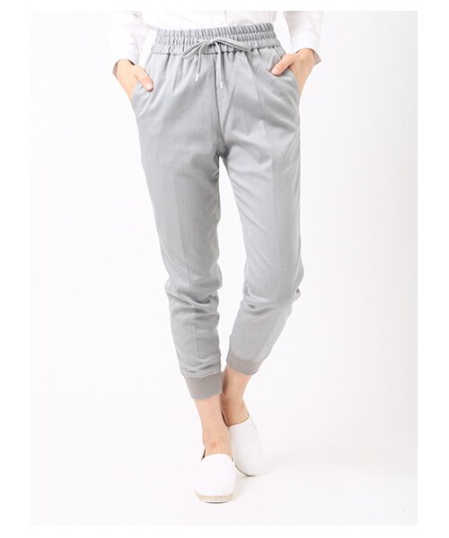 メンズライクなシルエットがクールな印象を与えるパンツ。足元はパンプスからスニーカー、スリッポンまで合わせやすいです。これ一本でキレイめカジュアルが決まるアイテムです。ウエストは平ゴムと紐を使用。【モデル身長:約169cm/着用サイズ:Sサイズ】