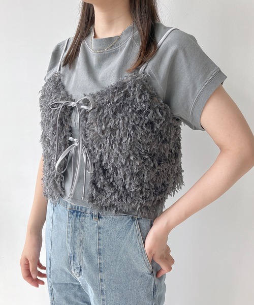 ふんわり女の子らしい質感が可愛い☆重ねるだけで今っぽく着映えるリボンビスチェ ふわふわで女の子らしいフェザーデザインときらきらラメのシャギーデザインから選べる、トレンドのリボンビスチェ。ボリュームのある見た目だけど、コンパクトなクロップド丈で薄手の素材だから程よくフィットし華奢見え♪ Tシャツやタンクトップ、シャツなど幅広いアイテムにレイヤードするだけでコーデをワンランク上げてくれる便利アイテムです。 ☆フェザー:アイボリー系(IVフェザー)/グレー系(チャコフェザー) ☆ラメ:ライトグレー系(LGYラメ)/ブラック系(BKラメ) ▼商品について ・画像の商品はサンプルとなります。実際の商品と色味、仕様、加工、サイズ、素材等が若干異なる場合がございます ・サイト上のカラー名と、お届け商品に記載されているカラー名が異なる場合がございます。 ・商品の色味は、撮影場所や光のあたり具合などにより色味が違って見える場合がございます 。また、お客様のお使いのPCのモニター環境などにより色味が違って見える場合がございます。予めご了承の上ご注文下さい。 ▼お取り扱いについて ・着用またはお取り扱いの際は、アテンションタグや洗濯ネームを必ずご確認ください。 ▼返品・キャンセルについて ・着用、洗濯後の返品は致しかねます。 ・商品到着後、着用前に商品を確認して頂きますようお願い致します。 ♪商品のお気に入り登録 お気に入り登録した商品は、ラスト1点になった時、完売商品の再入荷、セールになった時にお知らせします。 ♪ブランドのお気に入り登録 新商品の発売、再入荷、セール情報など、ブランドのお得な情報を受け取ることができます。