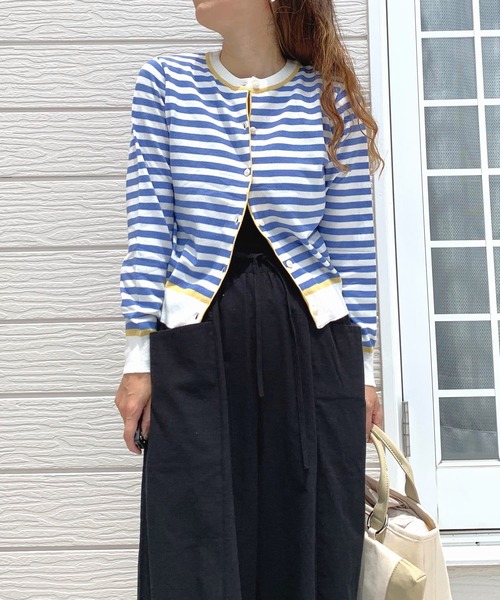 【WEB限定アイテム】1色アクセントカラーを入れたボーダーカーディガンです。 程よいショート丈で様々なコーディネートに合わせていただけます。 カーディガンとしてはもちろん、ボタンを閉じてプルオーバーとして着こなすのもおすすめ。 シンプルながらも存在感があり、幅広いスタイリングで活躍してくれる一枚です。 《インフォメーション》 ◆商品のお気に入り登録 完売していても再入荷時に再入荷通知を受け取ることができますので、是非ご登録ください。 ◆ブランドのお気に入り登録 新商品や再入荷などの情報を受け取ることができますので、是非ご登録ください。