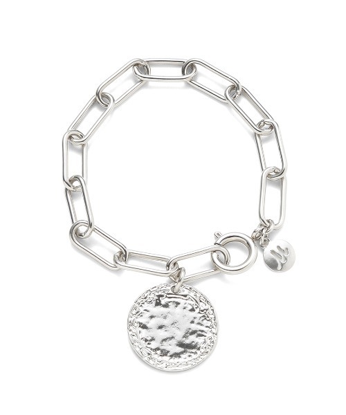 【程よいボリューム感が秋冬に映える!スクエアチェーン×コインモチーフのブレスレット】【Design/Styling】スクエアパーツをつなぎ合わせたチェーンブレスレットに、存在感のあるコインモチーフが新鮮! ヴィンテージアクセのようなリッチ感が楽しめて、寂しくなりがちな秋冬の手元に華を添えてくれます。大げさすぎず地味すぎない、程よいボリューム感で使いやすいタイプ。シンプルなニットやアウターにも映えるデザインです。【Color】カラー展開は、暖かみのある「ゴールド」とシャープな「シルバー」の2色です。※照明の関係により、実際よりも色味が違って見える場合があります。またパソコン・スマートフォンなどの環境により、若干製品と画像のカラーが異なる場合もございます。予めご了承ください。商品の色味は、商品単品画像をご参照下さい。 ※商品画像はサンプルのため、色味やサイズ等の仕様に変更がある場合がございますので、予めご了承ください。