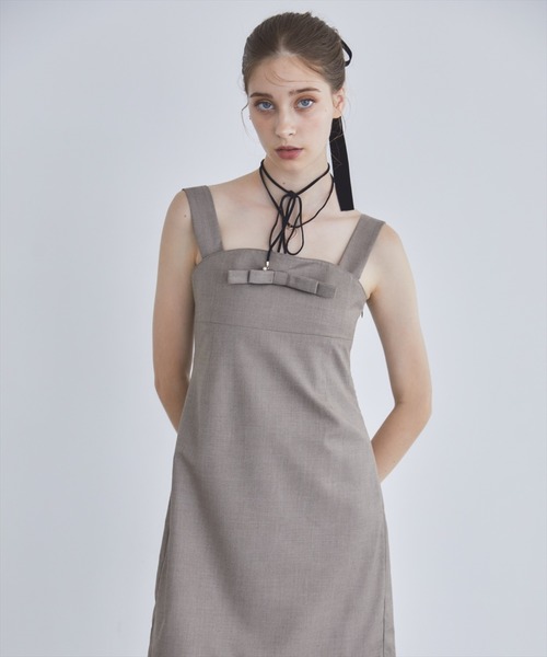 ミニマルなデザインに、クラシカルなリボンをあしらって リボンがポイントのミニワンピース。 ミニマルなデザインでジャケットとの相性抜群! 肩紐はボタンで長さの調整が可能です。 【styling】 ジャケットとロングブーツを合わせてかっこよく着こなすのがおすすめ! インナーをレイヤードすれば涼しくなっても着られるので、ロングシーズン使えます。 --------------------------- 透け感:なし 裏地:あり 伸縮性:なし 生地の厚さ:ふつう --------------------------- F:着丈80cm バスト78cm ウエスト69cm