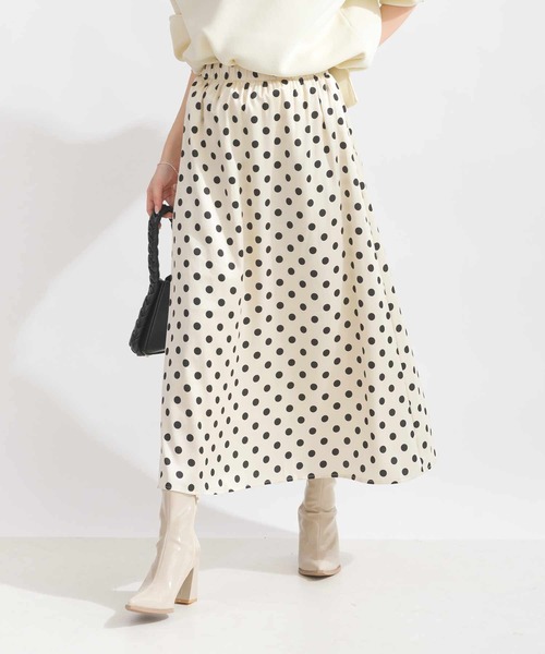 ドット柄プリントの上品なAラインスカート。ほんのり光沢感のあるサテン生地を使用しており、さらっとした軽やかな着心地になっています。ウエストゴムでストレスフリーな着脱が可能。縦のシルエットを強調するAラインシルエットなのでスタイルアップ効果も。フリルトップスと合わせて王道フェミニンコーデやボウタイブラウスとあわせたきれいめTシャツ合わせでカジュアルなどトップスを変えて色々なシーンに活躍してくれます。※ウエストゴム【詳細情報】厚み:■薄手 □ふつう □厚手透け感: ■なし □あり光沢感: □なし ■あり伸縮性: ■なし □あり裏地: □なし ■ありポケット:■なし □あり 重量: 約280g※撮影場所や明るさにより実際の商品と色味が若干異なる場合がございます。 ☆商品のお気に入り♡登録を押せば”再入荷通知”や”残りわずか通知” 値下げのお知らせが届きます!お気に入りのブランド登録していただければ新商品入荷のお知らせも届きますので是非登録してみて下さい