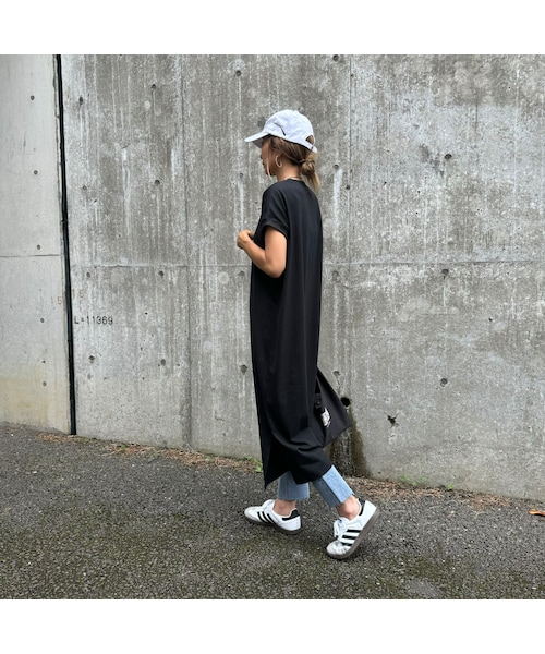 ゆるっとしたオーバーサイズシルエットは1枚は持っておきたいワンピース。 やや厚手のコットン素材でカジュアルながらきちんと感があるロングワンピース。 オーバーサイズのリラクシングと、ストンと落ちるIラインで体型カバーも嬉しいポイント♩ 1枚で着るのはもちろん、両サイドにスリットがあるため、ワイドパンツやレギンスを合わせたレイヤードコーデもおすすめ! ※モデル身長:161cm ◾️クリックポストにて代引きをお選び頂いた方は、400円プラスさせていただき、宅配便代引きにて発送させていただきますのでご了承下さい。 ◾️カラー ブラック ◾️サイズ M 着丈:115cm 身幅:58cm 裄丈:33cm 裾幅:57cm ※多少の誤差は予めご了承下さい。 ◾️素材 本体:綿100% リブ:綿95% ポリウレタン5%