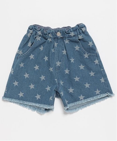 ジャカードデニムに星柄をデザインしたポップなショートパンツです。裾を切りっぱなしにしたラフなのフリンジが、コーディネートに抜け感をプラスしてくれます。ウエストはゴム仕様で締めつけ感がなくやさしくフィット。はくだけで主役級のインパクトを与えてくれるデザイン性に優れた1本です。内側にお名前を記入できるタグつき。【おすすめの着用時期は秋冬シーズン】【透け感】透けない【生地の厚さ】厚い【伸縮性】なし【裏地】なし【ポケット】あり【アジャスター】あり