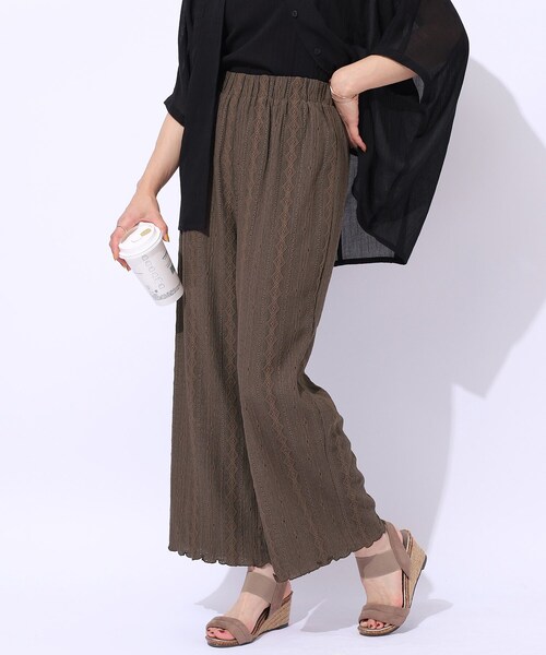 【デザイン】レースが目を惹くストレートイージーパンツ。ウエストはゴム仕様になっているので、楽ちんでストレスなく着用していただけます。裾がメロー仕様になっているのもポイントです。総レース柄でコーデのアクセントにピッタリな1枚に仕上がっています。【スタイリング】シンプルなTシャツに合わせていただくだけで、ひと手間かけたような着こなしに。シアーのトップスやキャミレイヤードスタイルとも好相性です。ワンピースやBIG Tシャツとの合わせもバランス良く着ていただけます。【素材】伸縮性のあるレース素材を使用しています。ショート丈の裏地あり。※照明の関係により、実際よりも色味が違って見える場合があります。また、パソコン・スマートフォンなどの環境により、若干製品と画像のカラーが異なる場合もございます。#CutieBlonde#Cutie#cutieblonde#cutie#キューティブロンド#キューティ#20代#30代モデル情報:身長163cm B81 W59 H88 着用サイズ:02(M)店舗へのお問い合わせ商品番号:256-69002●製品寸法:02(M):W60~70cm H84cm 股下65cm 前股上29cm 渡り幅30cm 裾幅27cm03(L):W63~73cm H88cm 股下67cm 前股上30cm 渡り幅31cm 裾幅28cm04(LL):W66~76cm H92cm 股下69cm 前股上31cm 渡り幅32cm 裾幅29cm備考: