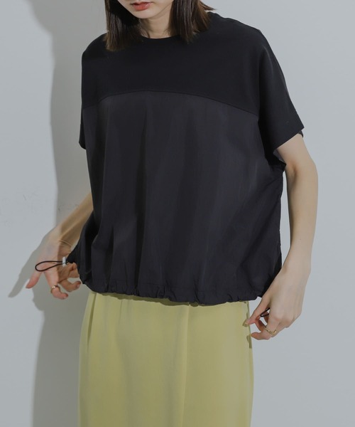 夏らしいナイロン素材ドッキングのカジュアルアイテム〇裾ドロストでシルエット調整ができる〇クロップド丈にしてスタイルアップ・ゆるっとオーバーシルエットにして体型カバー◎〇夏らしい素材で夏も快適【2024 Spring/Summer】【24SS】※商品画像は、光の当たり具合やパソコンなどの閲覧環境により、実際の色味と異なって見える場合がございます。予めご了承ください。※商品の色味の目安は、商品単体の画像をご参照ください。▼お気に入り登録のおすすめ▼お気に入り登録商品は、マイページにて現在の価格情報や在庫状況の確認が可能です。お買い物リストの管理に是非ご利用下さい。素材感透け感 : ややあり(OFF WHITEのみ)伸縮性 : ややあり(上身頃)裏地 : なし光沢 : なしポケット : なし