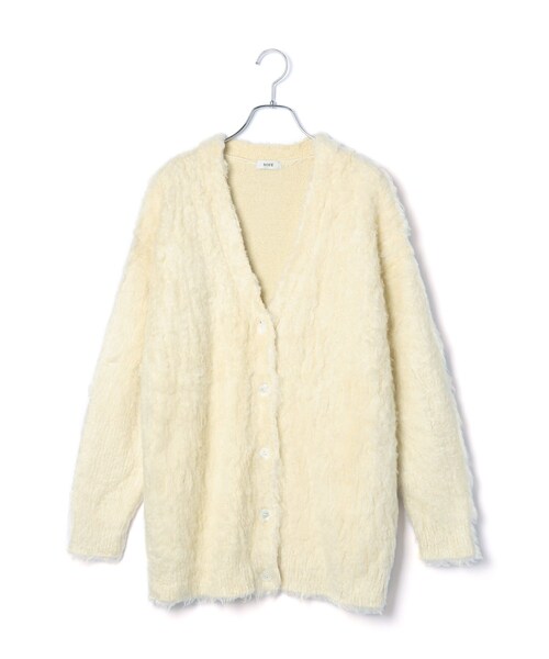【素材】 シルク100%のロービング糸をパイル編みし、起毛させて毛足を出したリッチな素材です。ナチュラルさを保ちながら強度をつける為、土台にはコットンナイロンの糸を使用しています。シルクの発色の良さ、自然な光沢も魅力です。 【デザイン・シルエット】 さっと羽織るだけで華やかなVネックカーディガン。ヒップを包みこむ丈で、適度なゆとりのサイズ感。幅広く着回し可能な一着です。 【カラー】 クリーム、ピンク、ネイビーの3色展開 【おすすめのスタイリング】 防寒としてだけでなく、スタイリングのクラスアップとしての着こなしにも。同素材のスカート(品番:GGC34120)とのセットアップもおすすめです。カットソーとデニムのスタイルにさっと羽織るようなカジュアルスタイルや、ワンピースとのフェミニンスタイルにもマッチ。とろみやシアーなどの対照的な素材をインナーにしても素敵です。 ---------------------------- 透け感:なし 裏地:なし 伸縮性:あり 光沢感:なし 生地の厚さ:中肉 ポケット:なし 開き方:ボタン ---------------------------- 【モデル情報】 モデル身長:168-170cm 着用サイズ:38 ※画像の商品はサンプルです。実際の商品と仕様、加工、サイズが異なる場合がございます。 ※撮影場所やライティング、お使いのモニター環境によって色の見え方が異なる場合がございます。 ※商品のカラーは画像の色味をご参照ください。動画は仕様説明のため、色味が実物と異なる場合がございます。