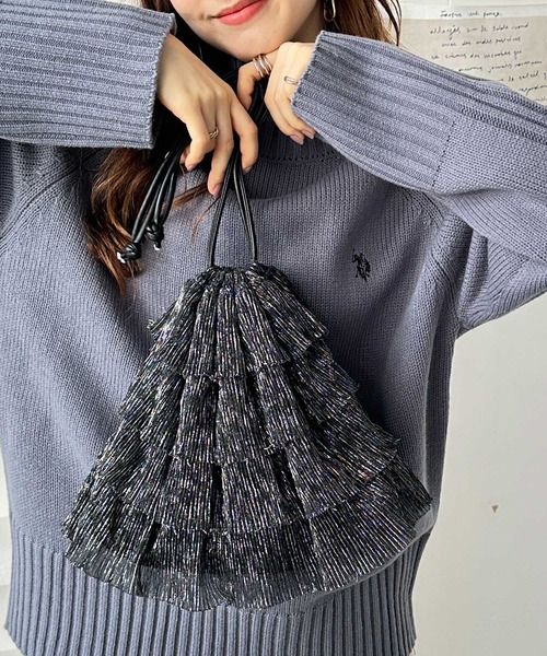 デイリー使いにもぴったりのサイズ感が◎ 1点投入でこなれ見えが叶うラメシアーフリルバッグ 〇コーデに華やかさをプラスするラメシアー素材 〇トレンドのフリルデザイン 〇使い勝手のよい巾着仕様 〇コンパクトなサイズ感でありつつ収納力◎ 〇肩がけでも手持ちでも使える2WAY ■デザイン アクセサリー感覚で使えるラメーシアー素材のフリルバッグ。 巾着式のころんとしたフォルムが可愛く、使い勝手がよいのも嬉しいポイント。 ほどよいサイズ感で必要なものがしっかり入る収納力なので、デイリー使いにぴったりです。 肩がけでも手持ちでも使えるので、その日の気分に合わせて使っていただけます。 ■素材 透け感とキラキラ感が可愛いラメシアー。 動きに合わせて揺れる、柔らかで軽い素材。 ■コーディネート シンプルなスタイリングにさっと合わせるだけで、こなれ感のあるコーデが完成! デニムボトムと合わせればトレンド感たっぷりのカジュアルスタイルに。 フェミニンディテールで、ガーリーなアイテムとも好相性です。 ■内容/開閉:巾着式 ■持ち手の高さ:約40cm ※商品の特性上、色・風合いの出方が多少異なる場合があります。 --------------------------------------------------------------------- ※サイズ寸法は実際の寸法と多少の誤差がある場合が ございます。 ※ご覧いただいているPC/WEB環境や撮影環境により、 多少色味が異なって見える場合がございます。 【お買い物をよりお楽しみいただく為に】 ▼商品のお気に入り登録をおすすめします♪ 『♡をクリック!』 完売カラーの再入荷やラスト1点の追加、 セールの際の通知を受ける事ができます。 ブランドのお気に入り登録もご一緒にお願い致します。 ---------------------------------------------------------------------