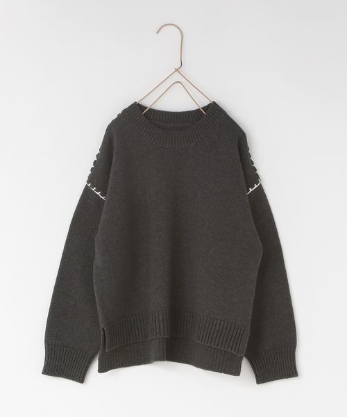 ■デザイン■毎年人気の配色ステッチが効いたベーシックなニットプルオーバー。ゆとりのあるボックスシルエットにサイドスリットを入れ、抜け感をプラスしているのがポイント。■スタイリング例■デニムやシェフパンツに合わせてカジュアルに着たり、ミニスカートに合わせて着るのもおすすめです!