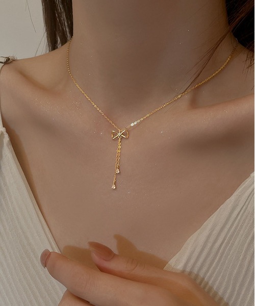 コーデの雰囲気を格上げしてくれる、存在感のあるリボンジルコンネックレスです。服装を選ばないリボンモチーフがアクセントの上品なネックレス。深みのある煌めきのジルコニアと艶やかなチェーンとの組み合わせにより、コーディネートにアクセントをプラスする一品。華奢なチェーンが縦のラインを強調し、すっきりとした首元を演出します。シンプルで合わせやすく、カジュアルから綺麗めコーデまで幅広く活躍してくれます。シーンやコーデを問わない上品さも魅力です。長さは長すぎず、首回りを華やかに演出してくれます。モードスタイルにも、韓国風スタイルにも、ガーリーなスタイルにも合わせやすい万能なアイテムです。綺麗めにもカジュアルにも合わせていただけるアイテムとなっておりますので、シーンを選ばずどのようなお洋服にも着用いただけます。※店頭及び屋外での撮影画像は、光の当たり具合で色味が違って見える場合があります。またご覧いただきますモニターや使用環境により実際の商品と多少色味が異なって表示される場合がございます。予めご了承をお願いいたします。★商品のお気に入り登録→【カートに入れる】右側の♡をクリック完売カラーの再入荷通知や、ラスト1点の通知、セールの通知も受け取ることができます。★ブランドのお気に入り登録→ブランドタグのページからお気に入りをクリック新作商品や再入荷などブランドのお得な情報を受け取ることができます。※ご注文いただいた予約商品のお届け時期の確認は、注文履歴ページより行えます。※他のキャンペーンにより、期間中に価格が変動する場合がございます。※セールは予告なく終了させていただく場合がございます。