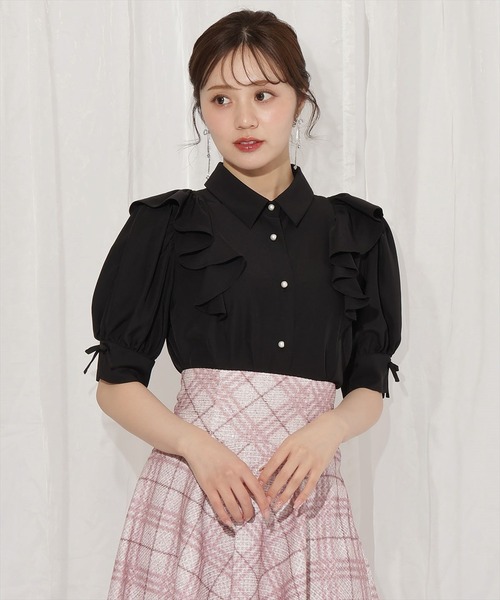 フリル×リボンのスウィート感あふれるスリーブリボンブラウス 【Design】 ・ラッフルフリルや袖の程よいボリューム感で、フェミニンスタイルにぴったりなブラウス。 ・袖のカットデザインとリボンがアクセントをプラス! ・フロントのパールボタンが、より上品な印象をアップさせてくれます。 ・フレアスカートやマーメイドスカートとのコーディネートでフェミニンな印象にコーディネートするのがオススメ♪ ・デニムやハイウエストのパンツと合わせてカジュアルダウンさせることも◎ ・フロントボタン仕様。 【Fabric】 ・柔らかな印象に仕上げてくれる、シワになりにくいポリエステル生地を使用。 ・ご自宅でお手入れが出来るのも嬉しいポイント♪ ・ホワイト、ピンク、ブラックの3色展開となります。 【Care】 洗濯機洗い可能 F:(00):着丈56㎝/身幅48㎝/肩巾34㎝/袖丈32㎝/袖巾55㎝/袖口巾28㎝/裾回り104㎝