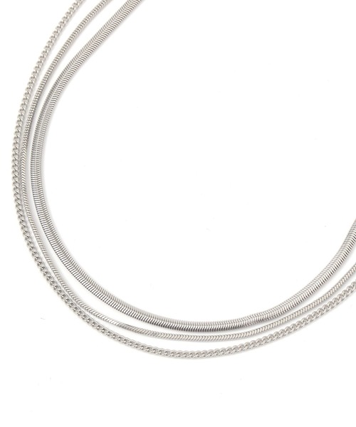 お手入れらくらくステンレス☆ 【素材】 ステンレス ●シルバーは素材の色味を生かしています。 硬く、傷が付きにくい素材で、水・汗でもさびにくく変色しにくいです。 ●ゴールドは密着性の高いイオンプレーティング加工。 一般的なメッキと異なり、耐久性が高く、水・汗でも変色しにくいです。 金属アレルギー反応の出にくい、チタンを使用しています。 【デザイン】 異なるデザインのチェーンが連なったネックレス。 一つ付けるだけでレイヤードが楽しめ、シンプルなコーディネートにプラスするだけで、即サマになります。 スネークチェーンと細かいあずきチェーンとの組み合わせがでオトナ感。 季節やシーン問わず楽しめるアイテムです。 【お買い物が便利になる機能がたくさん!】 ▼商品のお気に入り登録▼ 完売アイテムの再入荷通知、ラスト1点、またクーポンやお値下げ通知をお知らせします。 ▼ブランドのお気に入り登録▼ 新商品や再入荷のお知らせ等、いち早くブランドのお得な情報を受け取ることができます。 ぜひご登録ください。