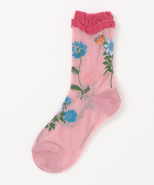 大胆に配置したお花のモチーフがポイントのソックス。ベースの糸には光沢感のあるシルケット加工を施した糸を使用。 シアー感があるアイテムなので、これからの季節に活躍する1足です。 お手入れ:手洗い 店舗へお問い合わせの際は、下記の品番をお申し付け下さい。[品番:34060043]