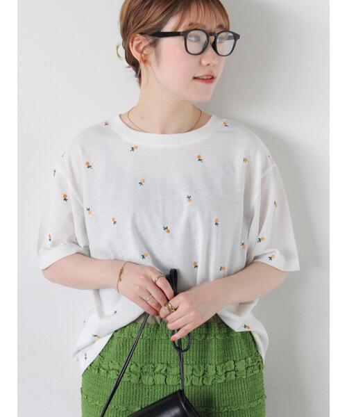 小花刺しゅうが散りばめられた可愛らしいTシャツ。小さな刺しゅうモチーフでスタイリングに可憐な表情をプラスしてくれます。どんなアイテムとも合わせやすいさりげない柄デザインがポイント。コーディネートのアクセント使いにも重宝しそうな1着です。※商品画像は、撮影環境やお客様のご利用のPC・スマートフォンのモニター環境などにより実物と色味に差異がある場合がございます。