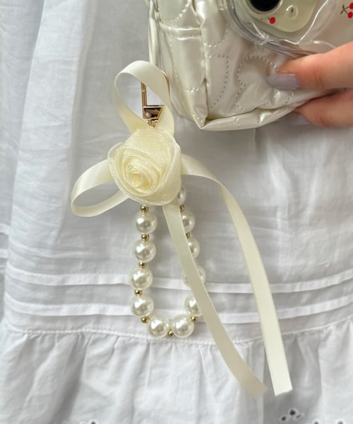 バラがポイントの新作チャームリボンやバラがポイントのアイテム鍵やポーチなど色々な所に付けることができます♪お友達とのお揃いやプレゼントにもオススメです。[Point]〇シンプルなアイテムと相性◎〇気分の上がるカラーでコーデのポイントに